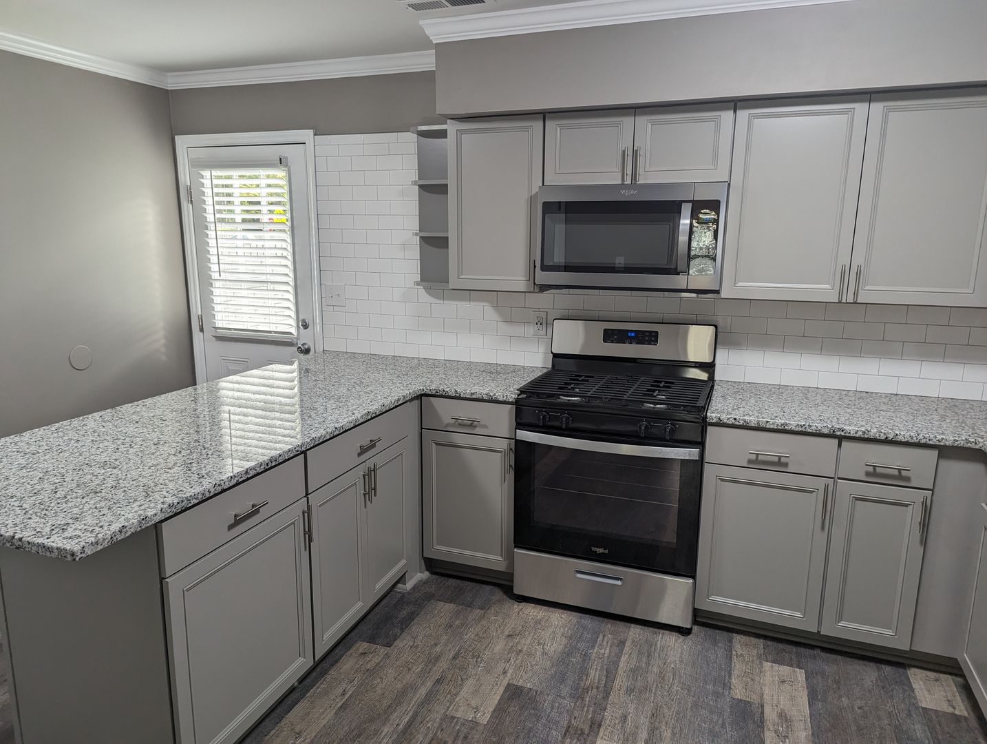 Totally renovated two bedroom townhome with all new eat-in kitchen that includes new cabinets, stainless appliances and subway tile backsplash, with granite countertops and eating peninsula. Unit has vinyl plank floor in the living-room and kitchen. Bathrooms have been renovated and there are LED lights and fans throughout. There is also a laundry-room with w/d. Complex is close to 85 and easy access to Charlotte. Unit shown is a similar unit.